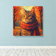 Traga o charme do outono para as suas paredes com o "Whiskers do outono" — um gato aconchegante num cachecol rodeado por folhas do outono, uma decoração de tela impressa.