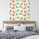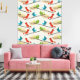 Um padrão retrorreflector na moda com aves da era atômica em vermelho, azul e verde, com um olhar inconfundível de 1950.
