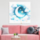 Impressão Em Tela Azul e Crescente Branco Lua Celestial Boho Moderno