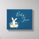 Doce esticou canvas com "Amor Bebê" em roteiro com o coelhinho mais bonito em uma cesta de ratos. Fundo azul escuro para um olhar dramático. Só adorável. 100% de satisfação do cliente no "Zazzle"