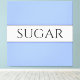 Esta design divertida e nostálgica apresenta dentro de texto uma ampla faixa central branca realçada com pinstripes pretas contra listras de fundo azul-claro em pó. O texto do AÇÚCAR pode ser personalizado.