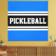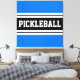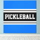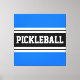 Este design desportivo divertido apresenta uma letra de bloco ousada, dentro de texto PICKLEBALL, uma faixa preta realçada com faixas duplas de corrida branca contra fundo preto.