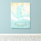 Esta design de impressão de tela, nas cores suaves do mar e da areia, permite que você adicione facilmente seu próprio nome e texto usando o modelo fornecido. A simples imagem do cavalo de mar sobre um fundo angustiado e aquoso é destacada por um sotaque de onda em aqua e branco. Procure ID623 para ver a coordenação de elementos à beira-mar e produtos adicionais com este design.