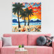Impressão Em Tela Beautiful Beach Scene with Palm Trees