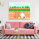 Adicione o nome do seu novo bebê a esta trabalho de arte. Um garotinho com taco de beisebol, luva e bola sentados ao lado de um grande ursinho de pelúcia num campo de beisebol.