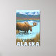 Bebendo de alce no lago - Yukon, Alasca - Poster de Viagens vintage foi criado em 2007. Esta imagem mostra cenas da Reserva Nacional Yukon, AK.