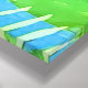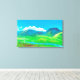 Céus claros, nítidos, azuis e verdes brilhantes estão presentes nesta pintura paisagística.