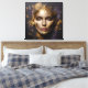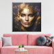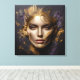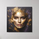 Um retrato de uma bela mulher trouxe à vida com um efeito realista. A imagem é gravada a partir de granito preto texturizado, e enfeitada com linhas de ouro abstrato, roxo escuro e elementos de ouro rodeados em seu rosto em um abraço artístico, criando uma composição cativante e única.