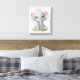 Adorável e fofo elefante bebê aquarela com flores rosa na cabeça arte de parede canvas para o berçário dos seus pequenos. Disponível em vários tamanhos.