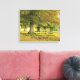 Bíblia Verse: Deus viu que era uma boa Tela Imprime. Lindas árvores de outono/outono com folhas amarelas e laranja e campo de pastagem com lago no fundo (filtro retrô aplicado)_...apresentando a escritura do Genesis. E Deus viu tudo o que ele tinha feito, e, vejam, era muito bom.