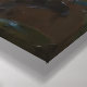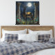 A black and gold Gazelle themed wall art. On the front is an illustration of a majestic gazelle with fur like molten black and gold, standing in ancient ruins bathed in ethereal moonlight. Intricate carvings adorn crumbling stone pillars, and bioluminescent flora casts a soft, otherworldly glow. The scene is rendered in a rich, textural oil painting style with thick impasto strokes.