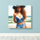 Impressão Em Tela Black Cowgirl Copper Hair Beach