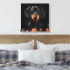 Add a striking focal point to your space with this Dachshund canvas print! Featuring a beautifully illustrated black and tan Dachshund set against a deep black background, this image is brought to life with rich autumn tones and detailed leaf accents. Perfect for Dachshund lovers, this canvas print captures the charm and elegance of the breed in a bold, artistic style. Whether displayed in a living room, hallway, or office, this Dachshund canvas print is sure to make a statement and showcase your love for this iconic dog.