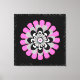 Flor liso com múltiplas camadas de pétalas em tons de preto, cinza, branco e rosa.