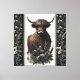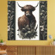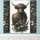 Esta vaca boho Highland apresenta uma faixa de impressão floral escura e temperada para criar um impressão sofisticado e charmoso do país.