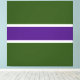 Este design atlético e ousado apresenta uma faixa horizontal roxa roxa e central realçada em faixas brancas entre faixas de fundo verde da floresta superior e inferior adjacentes.