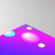 Um fundo brilhante e ousado acentua um design divertido de bolhas de cor flutuante.