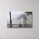 Uma tela com uma foto de um bombeiro de Newkirk em um incêndio.