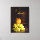 Uma macro foto de uva verde e uma maçã amarela com fundo rústico e as palavras "Bon Appetit" que é francês para "Aproveite sua refeição". Isto ficaria fabuloso na cozinha, na sala de jantar ou pendurado num restaurante. Muitos tamanhos para escolher.