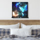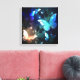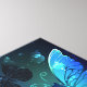 Fabulosa, brilhante, azul e amarela, borboleta noturna sobre fundo escuro.