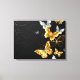 Borboletas Douradas, joias e brancas sobre fundo preto. Borboleta ouro.