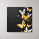Borboletas Douradas, joias e brancas sobre fundo preto. Borboleta ouro.