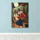 Outra pintura fantástica de Halloween, mostrando uma bruxa caminhando com seu gato e coruja através de uma noite iluminada pela lua.