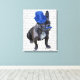 Impressão Em Tela Buldogue francês com chapéu azul e bigode