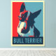 Bull Terrier Parody no Obama Hope Poster político. Isto também pode representar Pit bull, Pitbull, Staffordshire, Bully, American Bulldog, Terrier, buldog, Majorca Mastiff, Olde Pit Bulldogge, Staffy, Funcionarios, SBT, Stafford, Staffy Bull, Australiano Staffordshire, Cane Corso Continental, Dogo Argentino, Bulldog, Alano Bulldog, espanhol cão Vitoriano Bulldog, Dorset Olde Tyme Bulldog