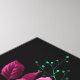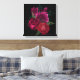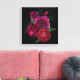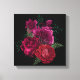 Tela impressa com uma bela imagem de um buquê de flores magenta e rosa. Fundo preto.
