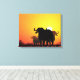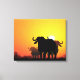 Uma manada de búfalos de Cabo em silhueta contra os incêndios do sol de pôr. Computação de Kathie Miller.