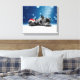 O Bulldog Francês de Natal Cama neve santa Canvas. Cachorros franceses bonitos dormindo em neve vestindo chapéu de Papai Noel. Presente perfeito para o Natal!