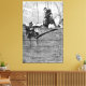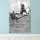 Um homem vendado é forçado a andar na prancha de um navio pirata, a tripulação de piratas vigia atrás do capitão do pirata. Uma gravura de um livro infantil da virada do século 19.