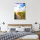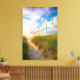 Esta foto mostra um pequeno caminho que leva à ensolarada praia arenosa.