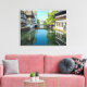Edifício e reflexo de flores de verão no canal de água em Estrasburgo França