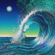 Mergulhe na beleza surreal desta pintura de paisagem, onde o sol se despede em uma mistura de cores opais, jade e iridescentes.
