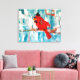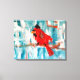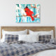 Oferta de canvas de uma pintura original de acrílico abstrato feita de um cardeal solteiro em um galho cercado por uma tempestade de neve.
