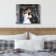 Galeria de casamento moderna em tela com um design simples com "felizes para sempre" em um script manuscrito branco elegante com floreios sobre a sua foto. Você também pode alterar o texto para seus nomes. Exiba sua foto de noivado favorita no seu casamento ou dê como presente para um casal recém-casado no seu primeiro aniversário.