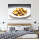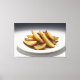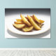Algumas cunhas de batata num prato com um fundo preto e branco dramático e artístico. A batata é saborosa para ser comida como lanche. Pode ser uma boa design para usar como uma das decorações da sua propriedade. Compre o seu hoje!