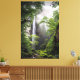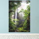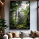 Uma floresta pulsando com vida, onde uma majestosa cascata pela montanha abaixo, entrelaçando águas cristalinas com vegetação exuberante, revelando a harmonia entre força e delicadeza da natureza intocada.