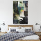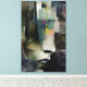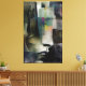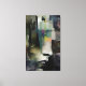 Uma peça artística geométrica, surreal, misturando formas de abstrato e um rosto feminino.