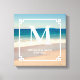 Crie sua própria arte de parede personalizada em tela quadrada com foto do beach e monograma de casamento.