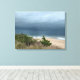 A cena da praia de Stormy é uma pintura digital original. Camadas de nuvens e chuva sobre um mar verde e cinza. Ondas brancas de água esparramam uma praia.