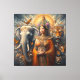O trabalho de arte retrata uma cena poderosa e mística, misturando elementos da espiritualidade, mitologia e natureza. A figura central expele um senso de serenidade e força, enquanto os animais circundantes somam à aura geral de poder e mística. Figura central A figura central parece ser uma deusa ou uma divindade, adornada com intrincadas joias de ouro e uma expressão serena. Seu rosto meio sombreado poderia simbolizar a dualidade ou uma conexão entre diferentes reinos. Sua gentil interação com o filhote de tigre sugere compaixão e harmonia com a natureza. Elemento Simbólico Elefante: Muitas vezes simboliza sabedoria, força e boa sorte em muitas culturas. Tigre: Representa poder, coragem e proteção. Ouro Jewelry: Significa divindade, riqueza e status. Antecedentes mais escuros: Cria uma sensação de mistério e enfatiza a figura central e os animais.