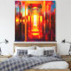 Céu através da porta de ouro, misturando elementos industriais com beleza natural para uma experiência visual única e cativante.