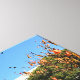 Lindo e nostálgico cenário de árvores e folhas de outono, e as aves voando sobre o céu azul com prédios da cidade à distância no Hama Rikyu Garden, Hama Imperial Jardim do Palácio Detached em Tóquio, Japão.