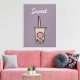 Design de chá de bolha bonito com tema roxo e cinza. O moderno e simples trabalho de arte verde legal de chá de bolhas popular bebe com pérolas.