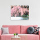 Lindas flores cor-de-rosa de cerejeiras sobre um lago.