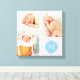 Belo impressão de canvas de arte personalizada na parede de com 3 fotos de seu bebê recém-nascido, organizadas em uma colagem de fotos quadradas. Personalizado com o nome ou monograma do seu filho no canto inferior, em um quadro quatrefoil sobre o padrão moderno do diafrão. Adicione suas fotos da família favorita e crie uma bela impressão de canvas. Clique em Personalizar para mover fotos, alterar a cor do plano de fundo e personalizar fontes e cores do monograma. presente de excelente para a família, amigos, pais e avós!