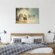 Two barefoot children stand hand-in-hand in shallow puddles, gazing toward a misty crowd under overhanging trees in this soft, impressionistic street scene. Warm sepia-gold tones bathe the foreground boy in straw hat and overalls and the girl in a simple yellow dress, while cooler teal-green fog and blurred figures create depth, melancholy, and tender nostalgia. Perfect for cozy reading nooks, kids’ rooms (with gentle storytelling), living rooms, home offices, therapy spaces, or as meaningful gifts for parents, grandparents, teachers, or anyone who cherishes quiet childhood memories and vintage emotional art.